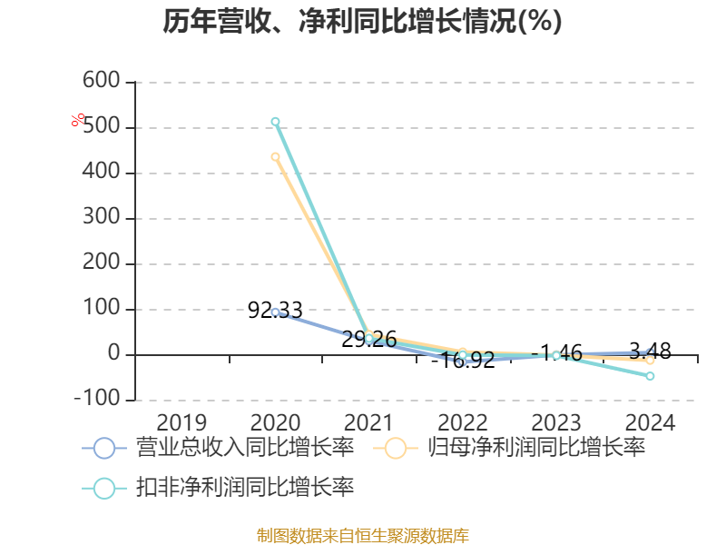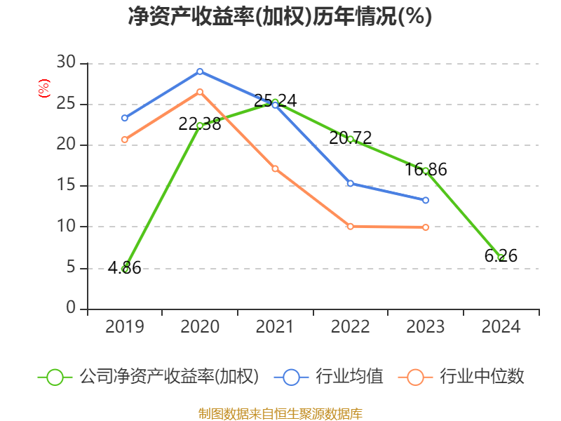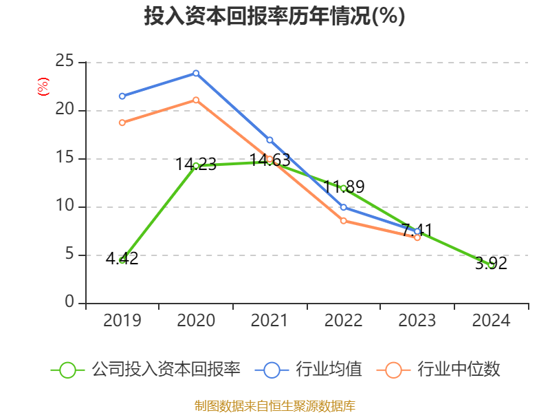 数据显示,2024年公司加权平均净资产收益率为6.26%,较上年同期下降10.6个百分点。公司2024年投入资本回报率为3.92%,较上年同期下降3.49个百分点。