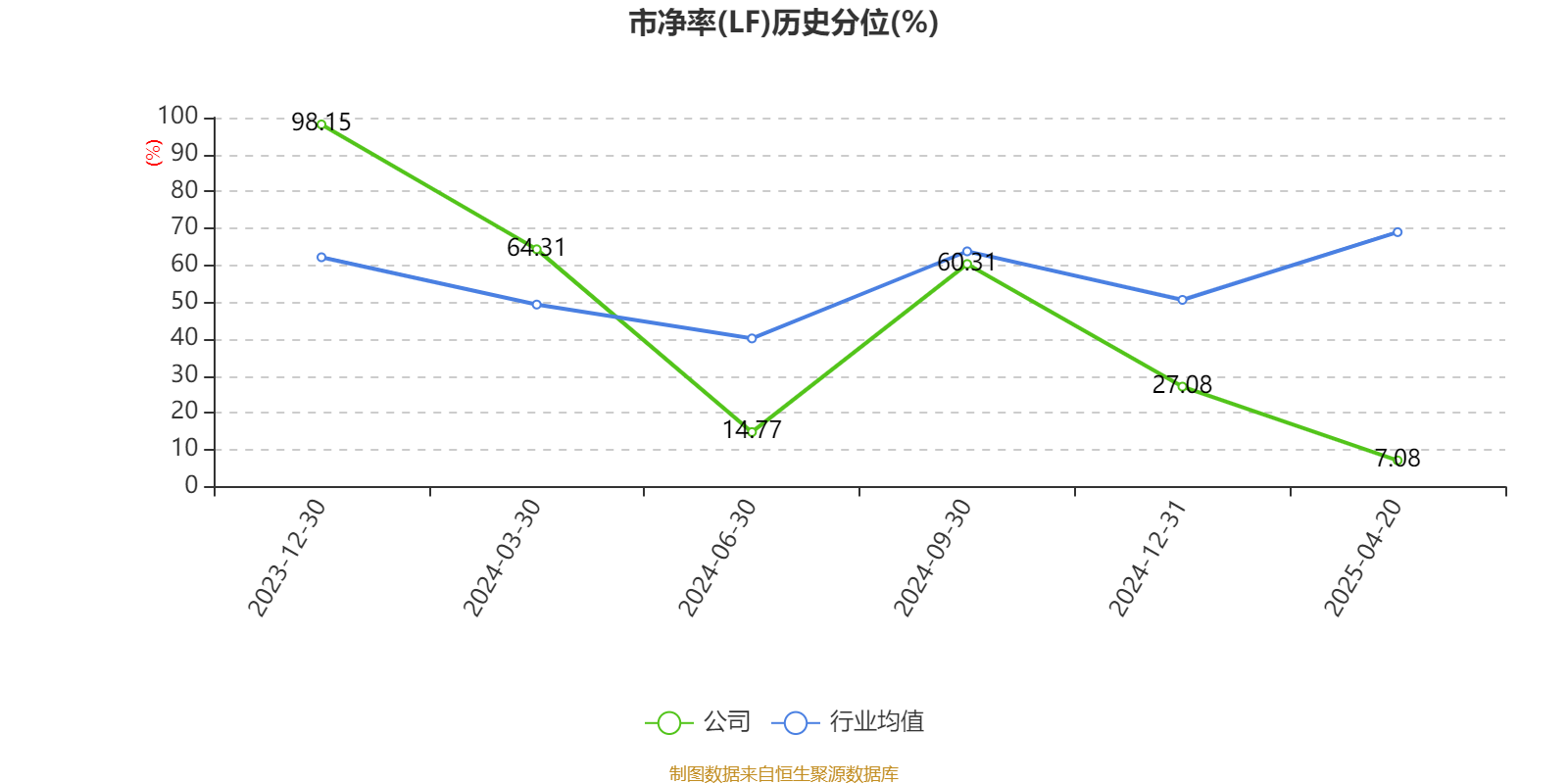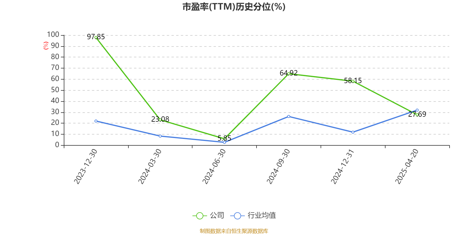 市盈率、市净率为负时,不显示当期分位数,会导致折线图中断。