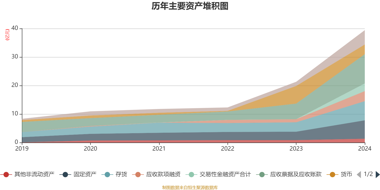 资产重大变化方面,截至2024年末,公司货币资金较上年末减少45.21%,占公司总资产比重下降20.45个百分点;交易性金融资产合计占公司总资产的6.86%,上年末为0;应收款项融资较上年末增加223.92%,占公司总资产比重上升3.83个百分点;合同资产较上年末增加383.27%,占公司总资产比重上升2.82个百分点。