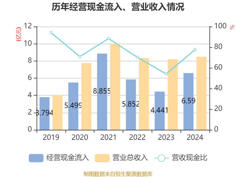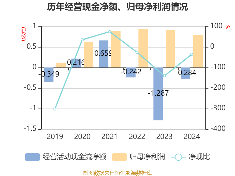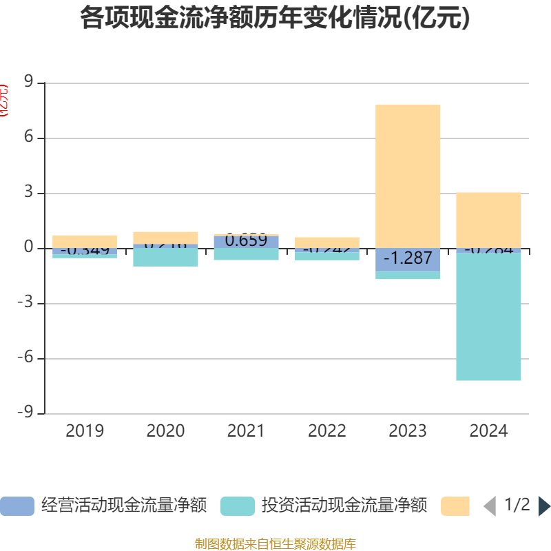 截至2024年,公司经营活动现金流净额为-2840.98万元,同比增加1亿元;筹资活动现金流净额3.02亿元,同比减少4.78亿元;投资活动现金流净额-6.94亿元,上年同期为-4025.4万元。